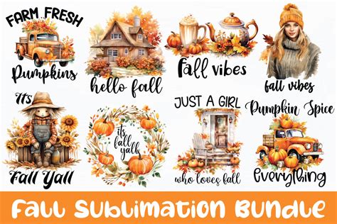 Free Fall Sublimation Clipart - Colorful Pumpkins & Quote